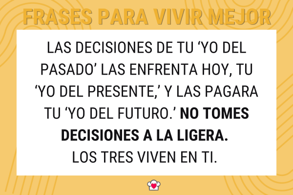 Cada decisión que tomas hoy moldea la vida que vivirás mañana. El yo de hoy da forma al yo del futuro; todo lo que no resolvemos ahora, lo seguimos cargando más adelante.